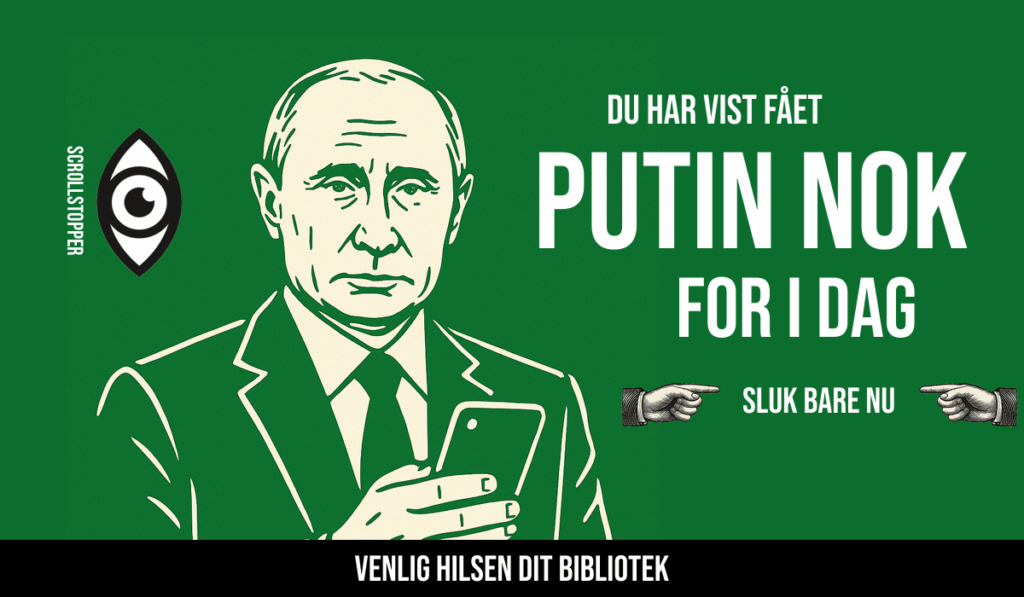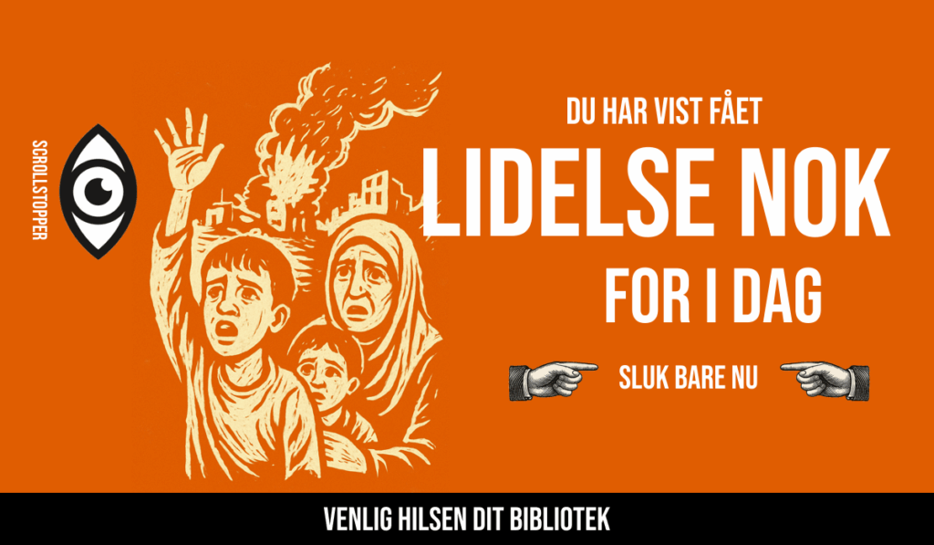 En “scrollstopper” er en venlig reminder om at du måske har (doom)scrollet længe nok. Med hilsen fra dit bibliotek. Hent dem, del dem.